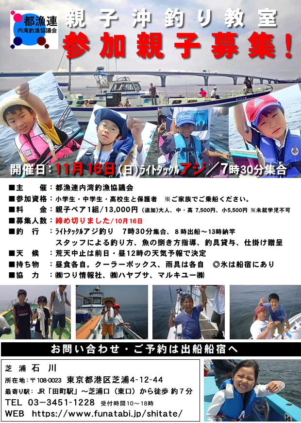 イベントのご案内 2025年11月16日(日) 親子沖釣り教室<ライトタックルアジ>